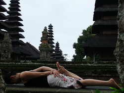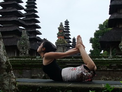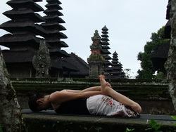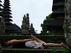 4. หายใจเข้ายกหน้าอก ศรีษะ และขาด้านหลังทั้งหมดขึ้นจนสุดแขนเหยียดตึง แล้วหายใจเข้าออกปกติค้างท่าสักครู่ เมื่อต้องการคลายท่าให้หายใจออก จากนั้นทำสลับข้าง