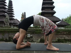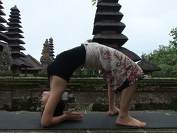 5. สำหรับผู้ที่ฝึกมานานลองเพิ่มความท้าทายจากท่าสะพานโค้งให้ลดศอกทั้งสองข้างลงพื้นประสานมือกันใต้ศรีษะหรือพนมมือก็ได้ยกศรีษะลอยจากพื้นค้างท่าสักครู่หายใจเข้าออกลึกๆ ให้ส่งความรู้สึกไปที่หัวไหล่และแผ่นหลังทั้งหมด