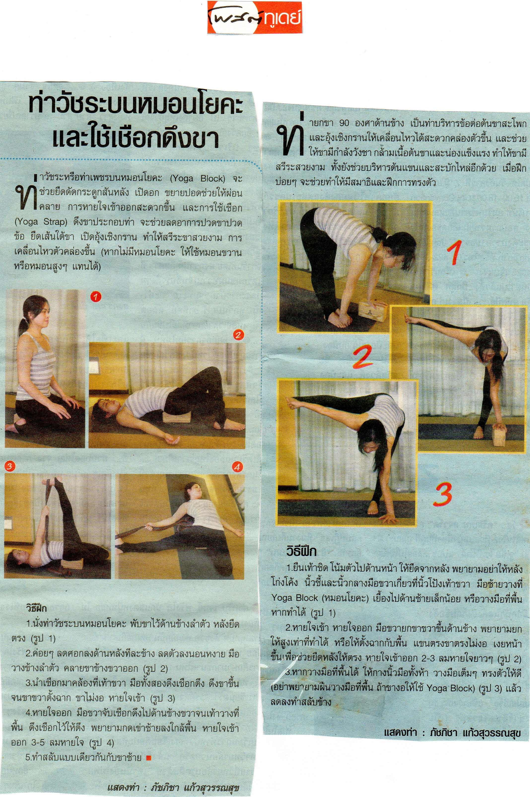 ท่าวัชระบนหมอนโยคะ และใช้เชือกดึงขา