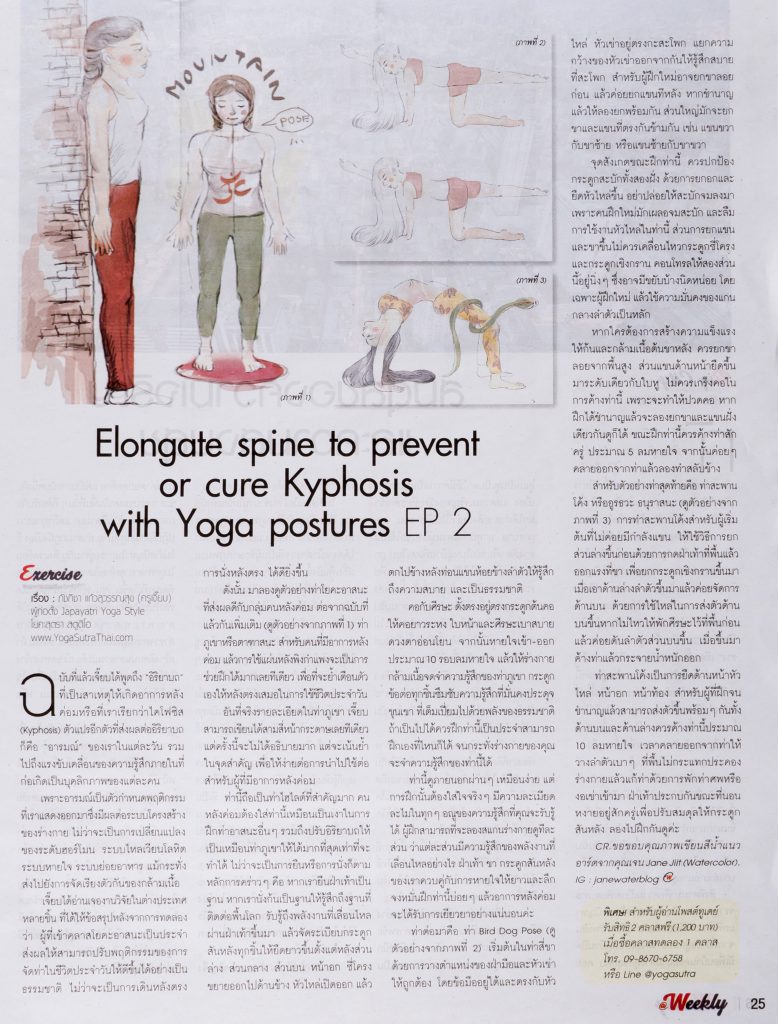 26 ม.ค. By admin No Comments In บทความ, บทความของเรา, หนังสือพิมพ์ Elongate spine to prevent or cure Kyphosis with Yoga posture EP.2
